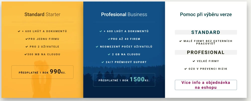 Co Organizer BOZP a PO umí? - automaticky sleduje lhůty kontrol, revizí, školení, zdravotních prohlídek a dalších termínů - upozornění na lhůtu obsahuje vyhotovené potřebné dokumenty ke lhůtě (presenční listiny, záznamy o kontrole, apod.) - ve verzi PROFI lze vést odděleně libovolný počet firem nebo provozů a tím se stává také vhodným nástrojem pro firmy dodávající služby BOZP - možnost vložení a sledování vlastních lhůt (např. schůzky, vlastní upomínky) - umožňuje práci libovolného počtu uživatelů s řízením a kontrolou administrátorem - umožňuje hlídání jakýchkoli jiných termínů a jejich kontrolu – efektivní řízení všech opakujících se úkolů - popisy úkolů, dokumenty z kontrol mohou být vloženy ke lhůtám a budou tak přehledně archivovány - upozornění na lhůty nebo klienta pomocí emailu, při startu počítače - vždy aktuální dokumenty bozp a po - 3 stupně uživatelských oprávnění.